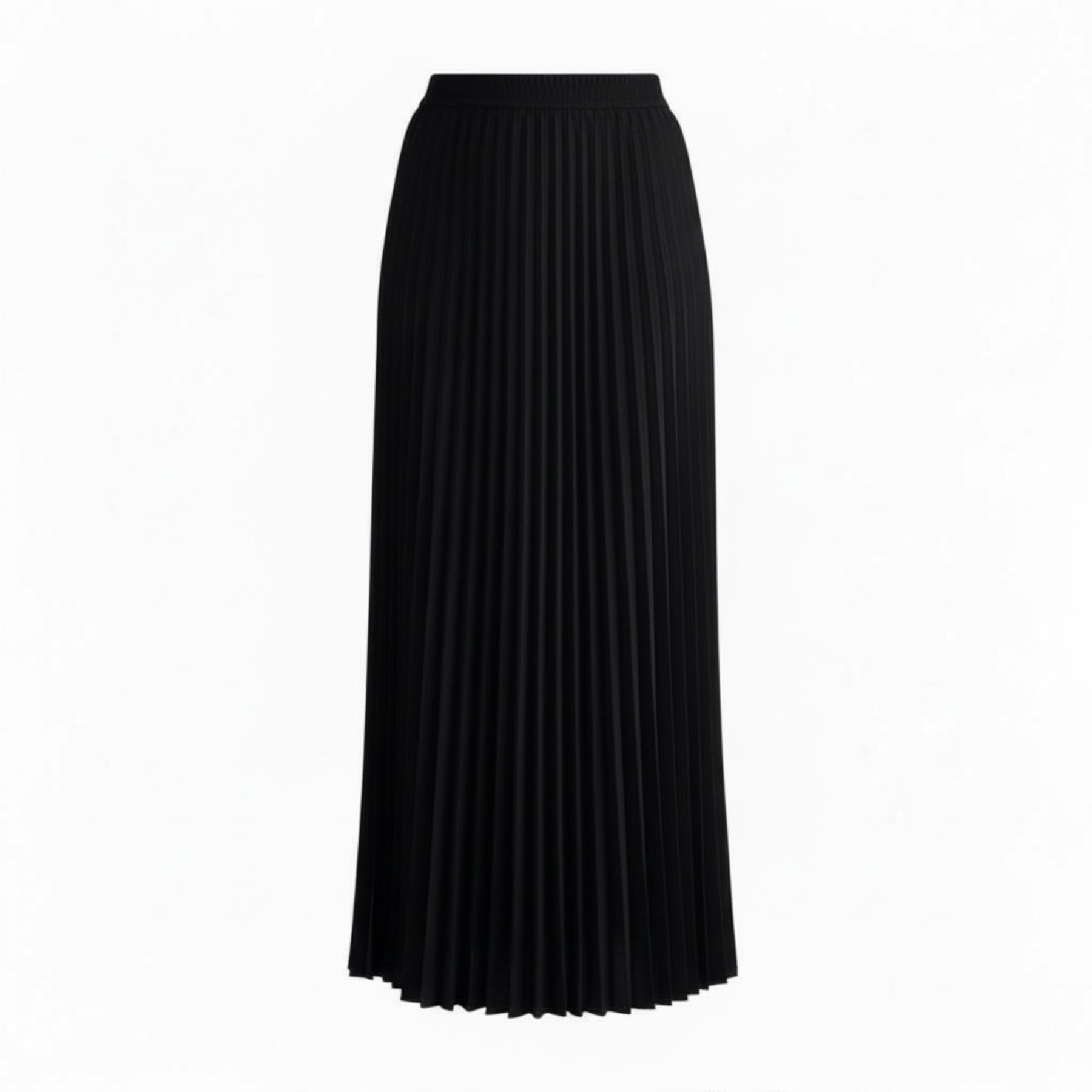 The Brave+True Alias Pleated Skirt in Black is a fabulous maxi length A -line skirt with and elasticated waistband and a pleated fabric that hangs beautifully. This Brave+True skirt is fully lined and has a flowy feel to it, moving gracefully as you move. A great skirt for Autumn Winter that can be dressed up or down depending on the occasion.