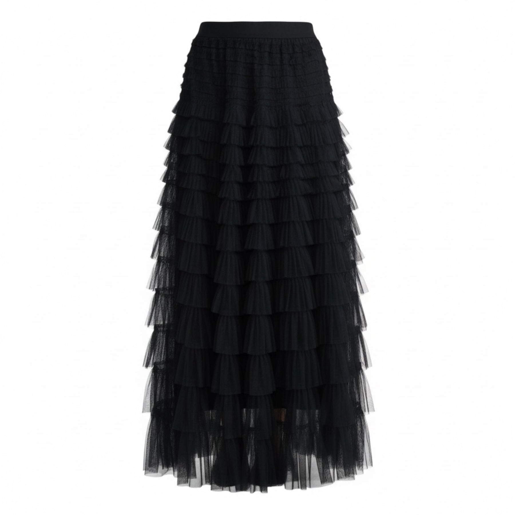 The Brave+True Chance Skirt in Black is a stunning skirt made up with layers of soft black tulle. This Brave+True skirt has an elasticated waistband making it comfy to wear all day/evening long. It features as full length tiered design with makes it work perfectly with knits for a more casual look, or dressed up with heels for the evening.