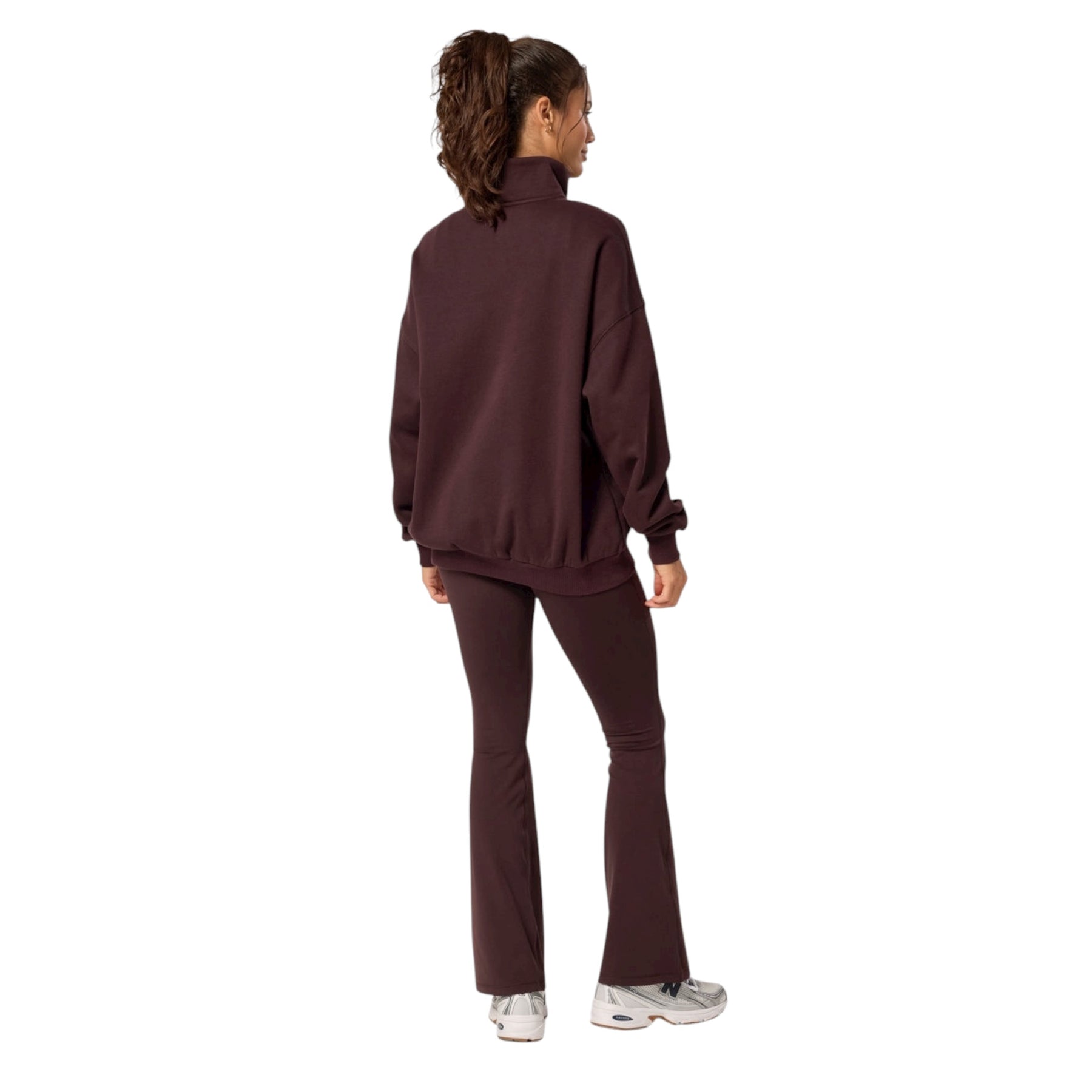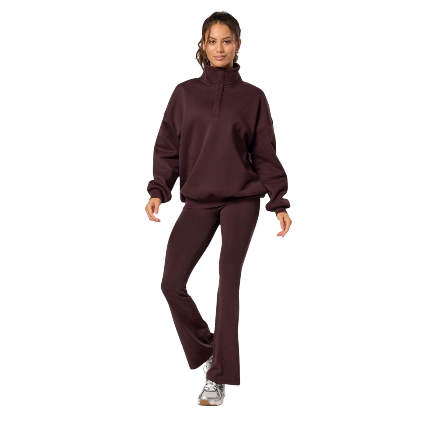 The Gym + Coffee Snap Collar Sierra Sweatshirt in Mocha Bean is a fleece lined Snap Collar Sweatshirt which is an oversized staple in an Off-Duty wardrobe. Whether it's a stroll for coffee or a run to the shops, feel comfy and stylish with minimal effort in this cosy fleece lined number. This Gym + Coffee sweatshirt features, a high neck with a snap collar, ribbed detailing at the cuffs and hem and a dropped shoulder design.  This sweatshirt also has an oversized fit, so we recommend sizing down.