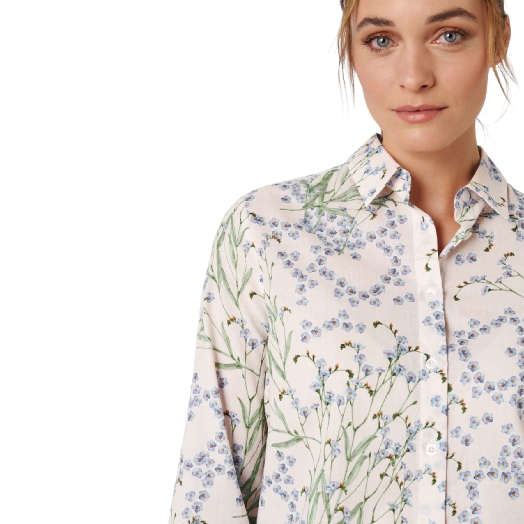 The TONI Clay LA Blouse in Sky Blue is an airy, feminine and effortless blouse that adds a touch of summer charm to any outfit.  This TONI blouse features a fun and fresh blue cherry blossom print made with lightweight, slightly sheer cotton that ensures all-day comfort.  Featuring a full-length button placket and a classic silhouette this blouse is an easy choice for versatile styling – casual with denim or refined with wide-leg trousers. A stylish piece with a soft spot for detail.
