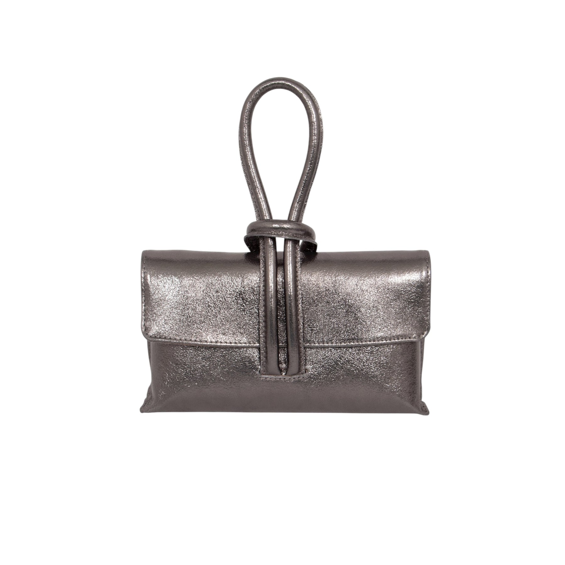 Trixie Metallic Italian Leather Clutch Bag Gun Metal Grey