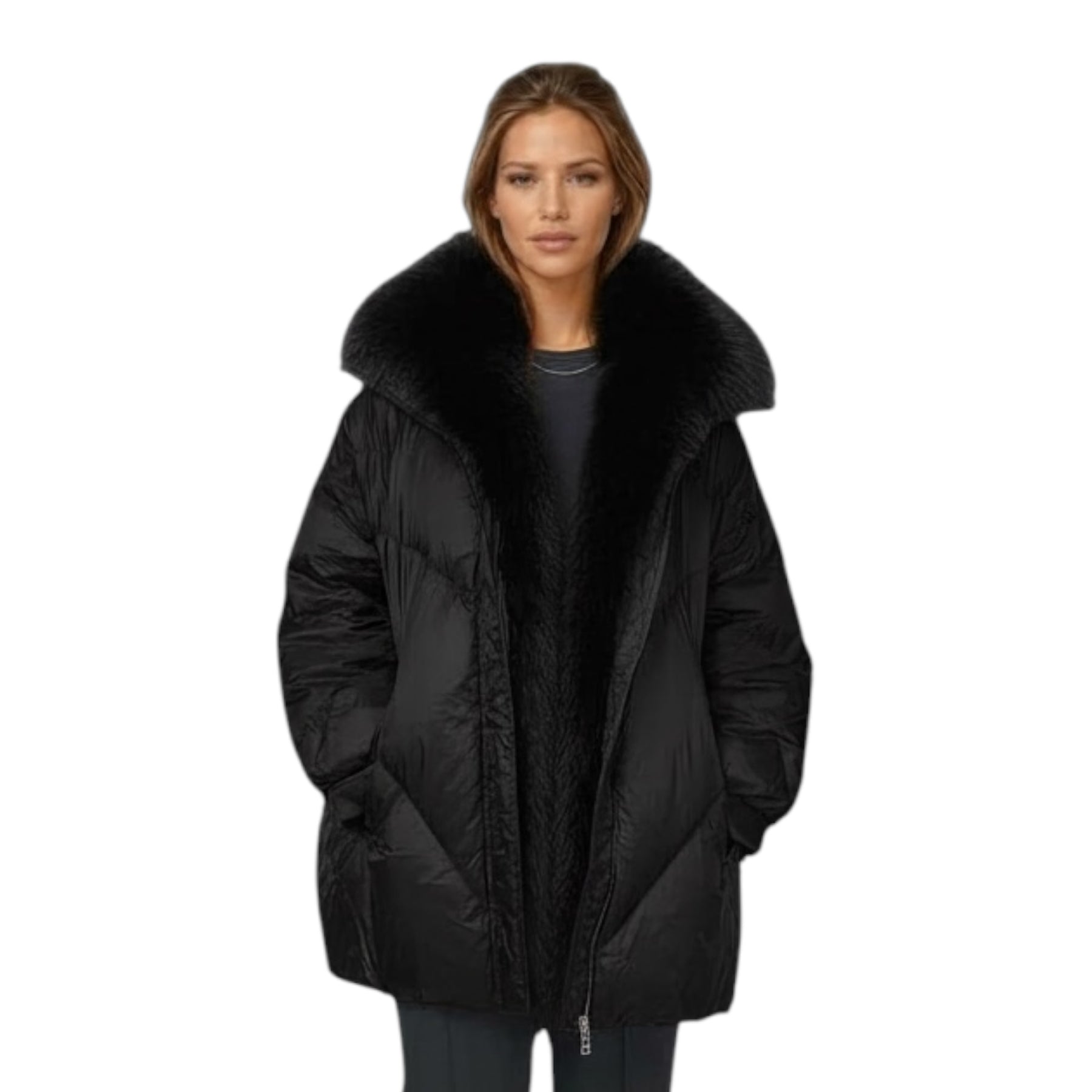 The Ivory jacket from Levinsky is an elegant women's down filled jacket in classic black. At 80cm in length, the Ivory jacket is both warm and stylish. Featuring a removable real fox fur collar and front edge, it allows you to customize your look effortlessly. The durable 100% polyester lining ensures long-lasting strength, while the secure zip closure provides convenience and protection against the cold. Designed by Danish brand Levinsky, this jacket combines quality materials and thoughtful design to keep you comfortable and chic throughout the season.