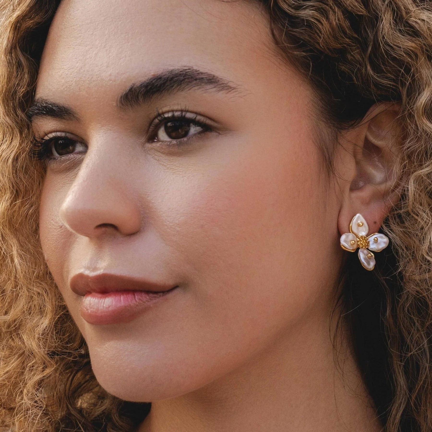 The Park Lane Gold Plated Plated Pearl Flower Earring is a gold plated stud earring made up with pearls in the shape of a flower. A show stopper earring that will elevate your outfit.