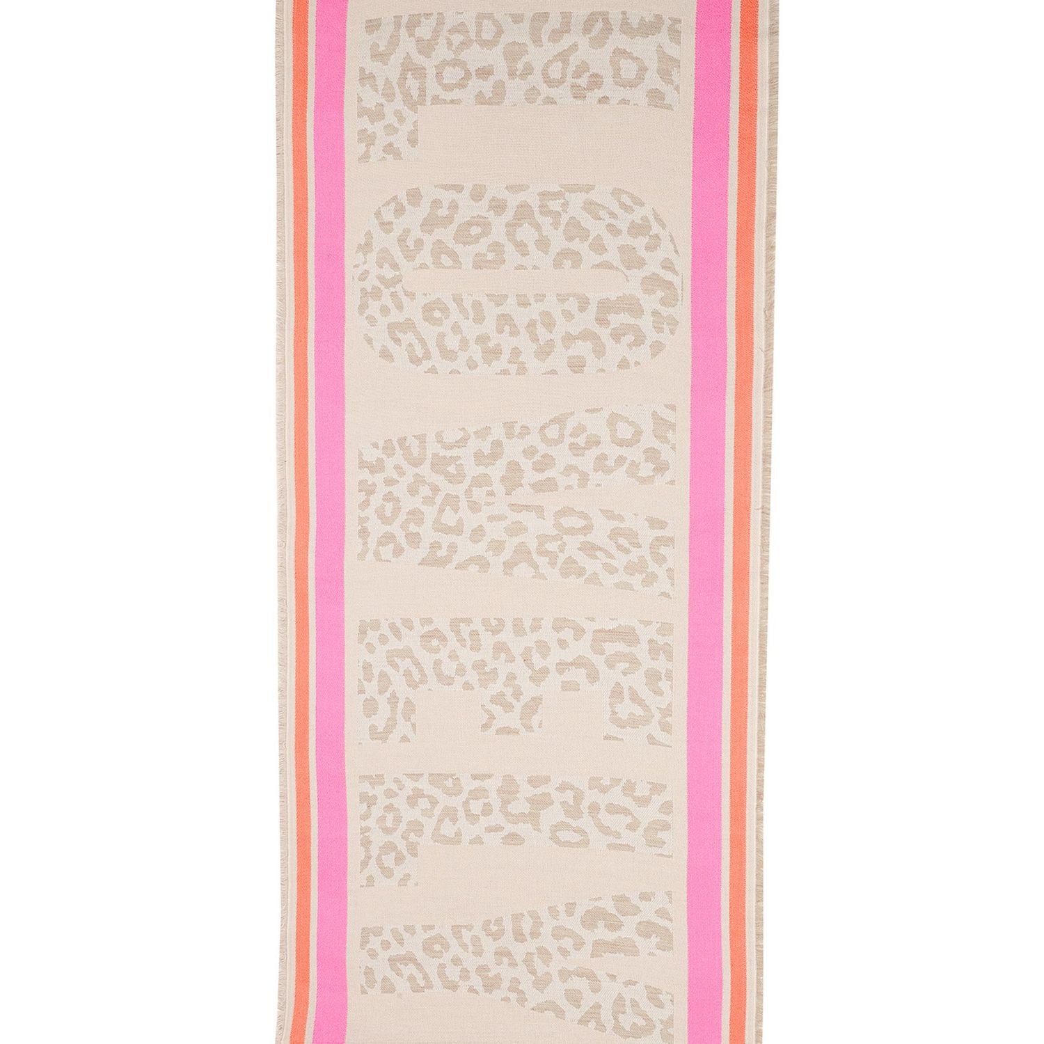 The Ombre London Pink and Orange Leopard Scarf is a fun scarf made using the finest quality wool mix. This scarf features a neutral leopard print in the middle that spells out 'LOVELY' and has a pink and orange border. It’s a versatile investment piece and the perfect choice for wrapping up on a chilly morning.