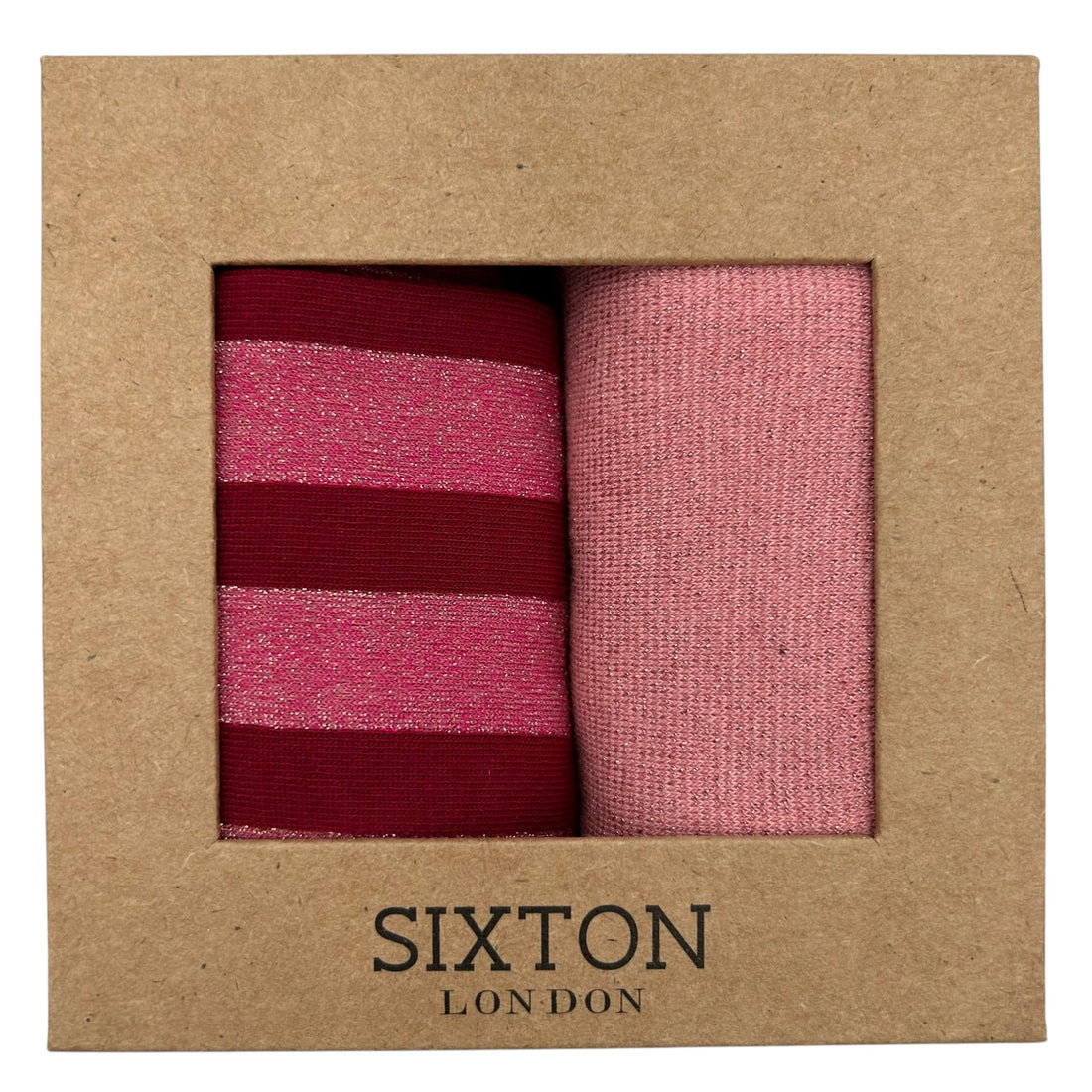The Sixton London Red Berlin and Tokyo Sock Box Duo are two pairs of socks in a gift box.  This box includes a pink and red striped pair and a pink sparky pair.  A great stocking filler for Christmas.