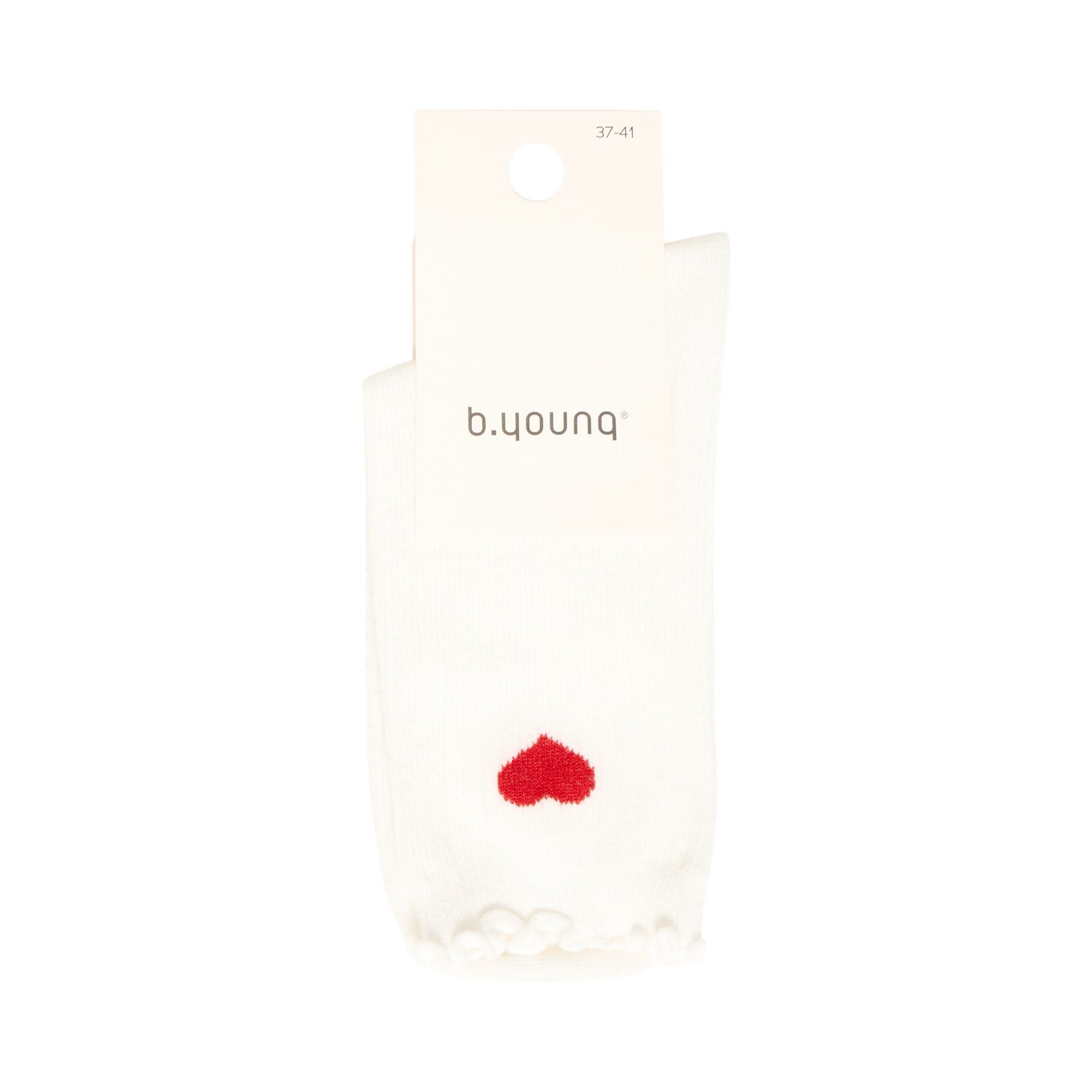 The B.Young Vinyet Socks in Hearts are white cotton socks with a heart design and a frill at the top. A great little gift or a cute pair of new socks for yourself!