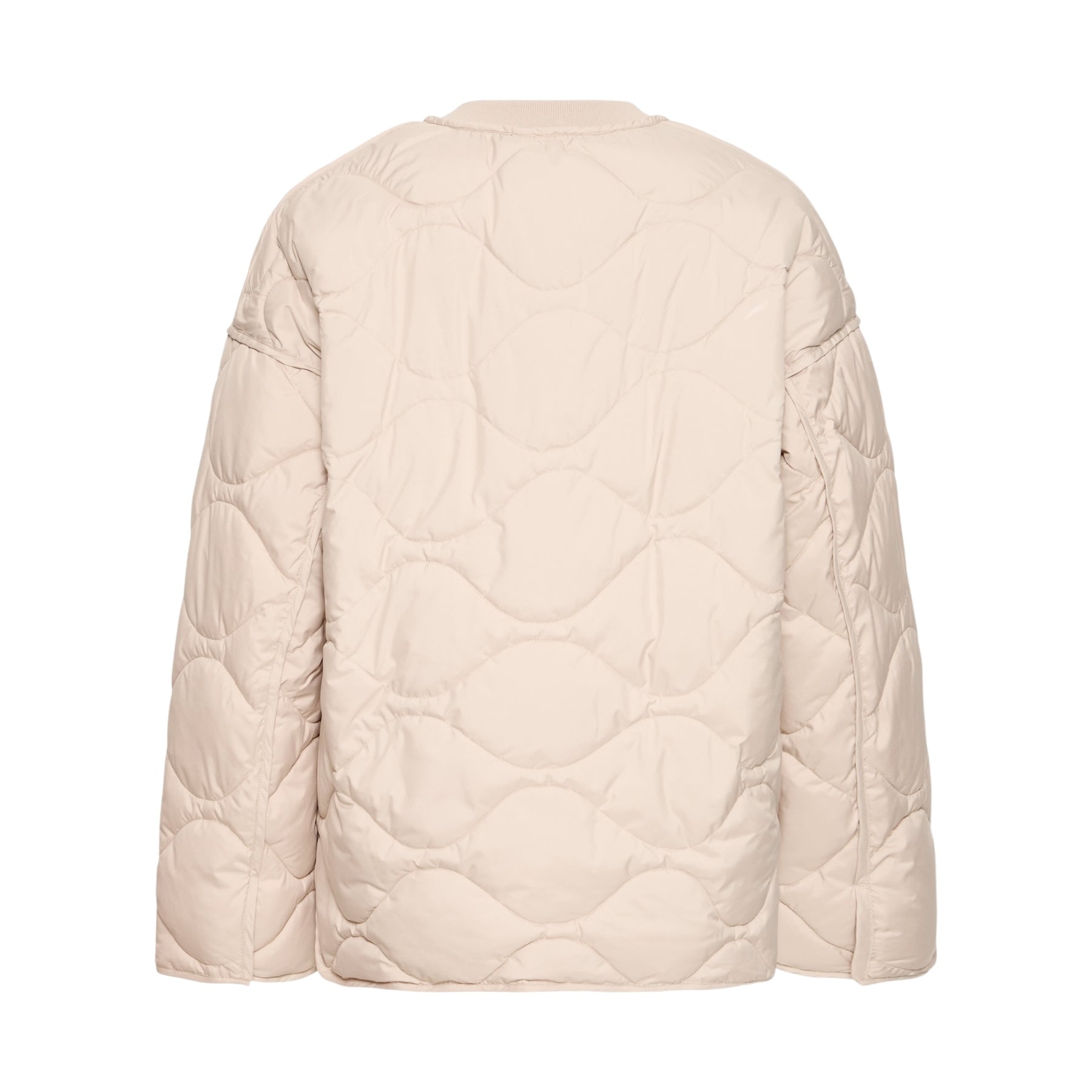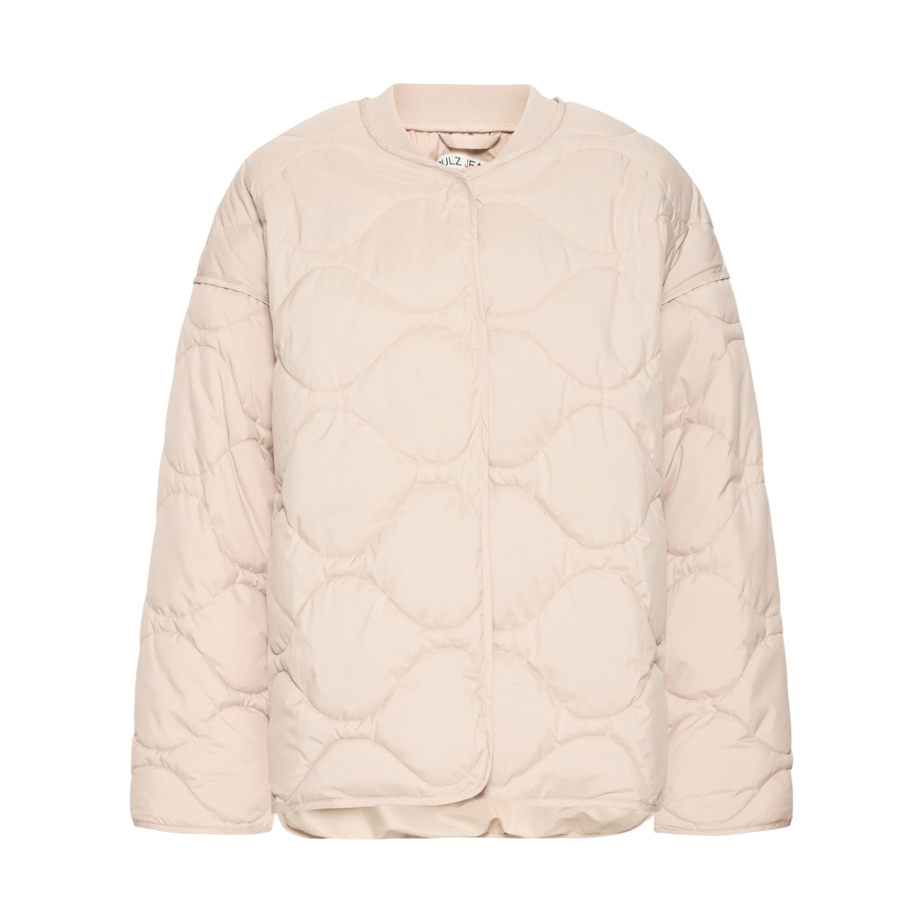 The Pulz Advia Jacket in Natural is a padded jacket with a boxy silhouette and a quilted texture. This Pulz Jacket features a round neck, long sleeves, snap front closure and side seam pockets. A great lightweight padded jacket for transitioning into Spring with a pair of jeans.