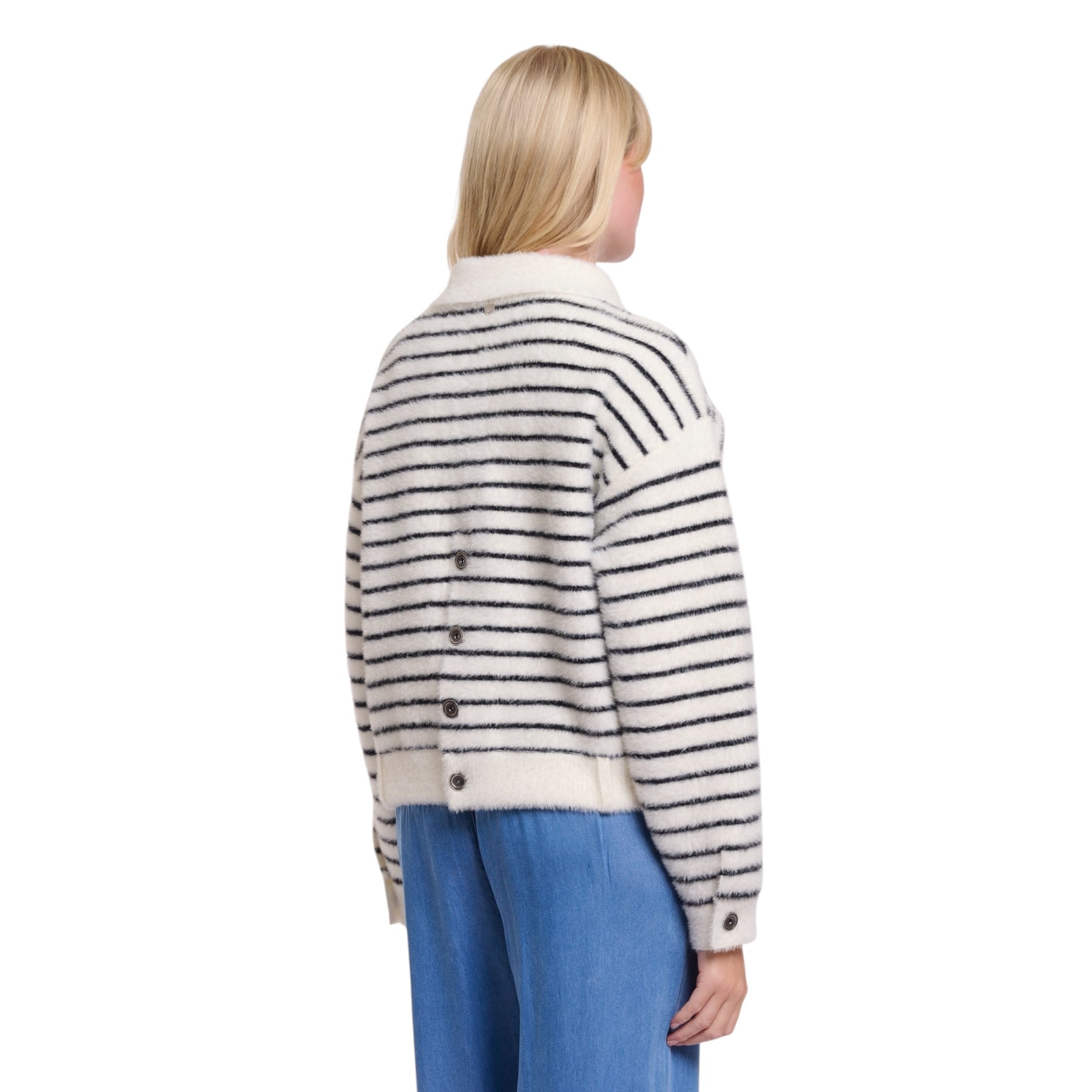 Indulge in the luxurious softness of the Rino & Pelle Bubbly jacket. Made from our signature material, this short jacket is a must-have addition to your wardrobe. This short jacket features a contemporary boxy silhouette, a flat collar, a button closure, two open front pockets, a button closure on each cuff and button detail at the back. Elevate your wardrobe with this exquisite piece that effortlessly combines luxury and practicality. The button detail at the centre back, really making this jacket stand out from the crowd!