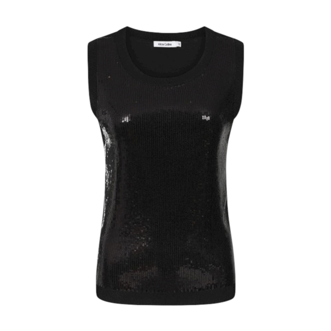 Pulz Jeans Morgan Sequin Top Black Champagne Animal